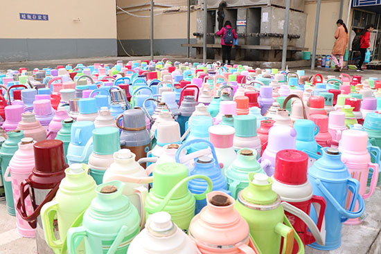 “以前周围打开水的人少,慢慢的打开水的也不打了,开始在宿舍烧了。而现在烧开水的人烧着烧着就不好意思了,看着舍友及周围的人都下楼打开水,还会经常听到他们的提醒,这样烧我们都不安全。慢慢地打开水成为我们公寓的一道靓丽风景线”。经济学院学生王轩平说。